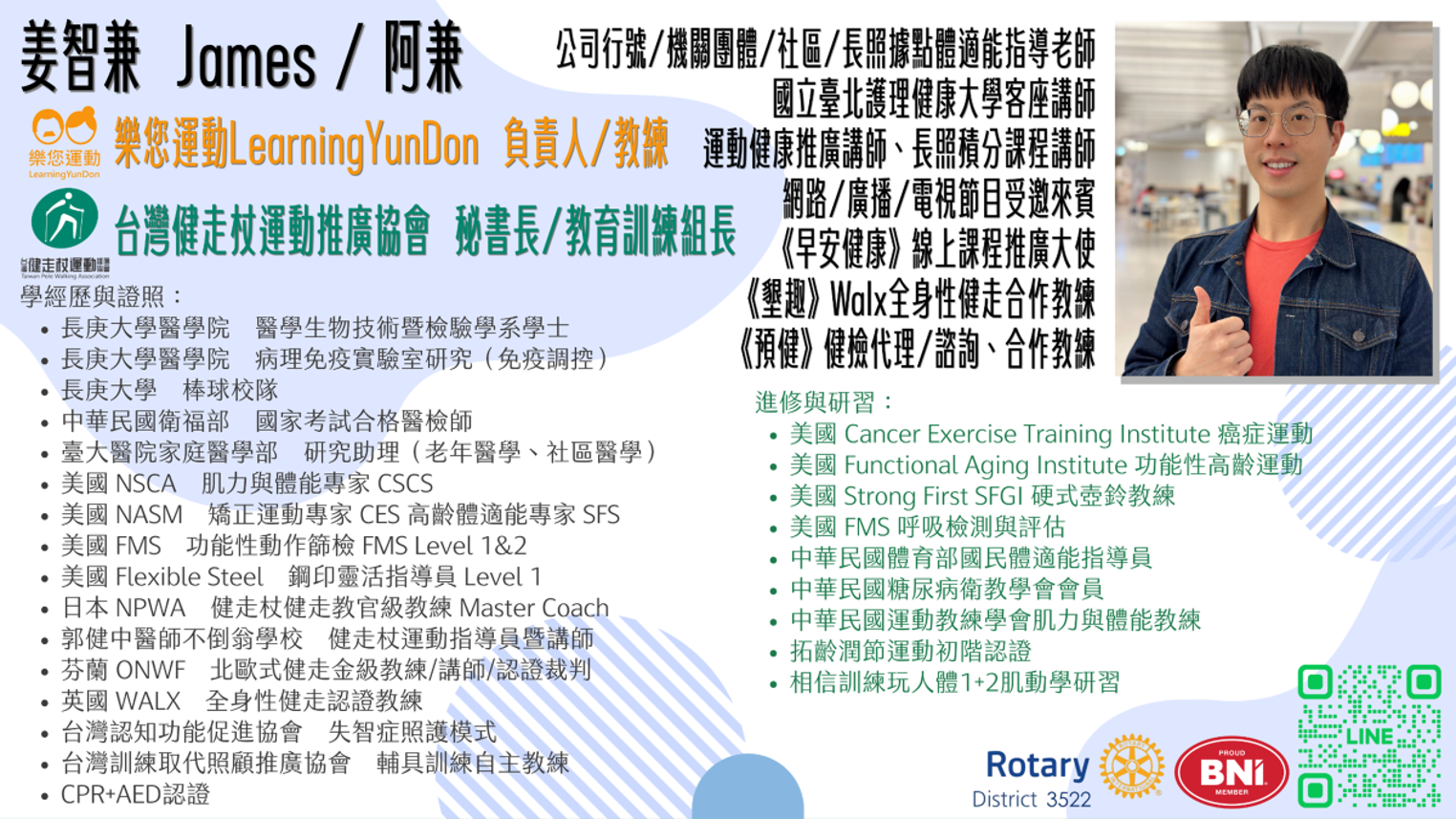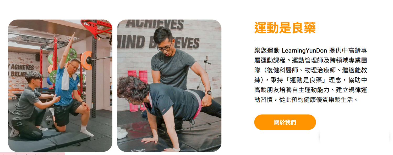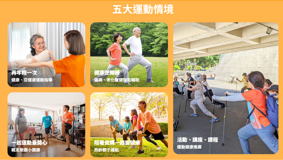 標籤: 精準運動 功能訓練 中高齡 復健復能輔助 教練課 小團課 外派 到府 講座 活動
